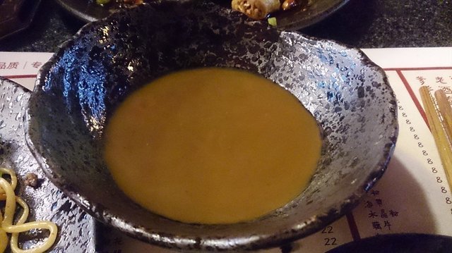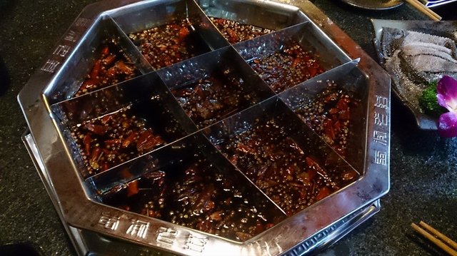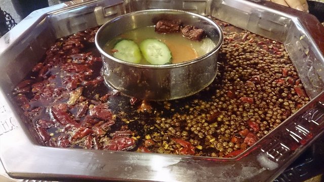 点了鸳鸯锅,原来这个鸳鸯锅的汤不是用来喝的呀,挺咸的。