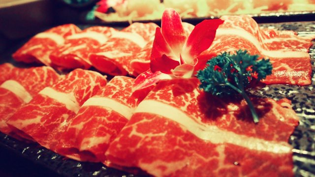 接下来是第三味--肉香.图中的雪花牛肉可是这家店的一绝,新鲜切片的牛肉肥瘦相间,有种神户牛肉的风采.据说这牛肉可与沪上某知名品牌火锅店的雪花牛肉相媲美,但价格只有其三分之一都不到,真可谓是业界良心.服务员帮着把牛肉在锅底中汆烫,熟练的手法起起落落,轻轻几下雪花牛肉就已熟透.夹起一片塞入嘴中,顿时有股奶香从牛肉上散发出来,充满了整个口腔,吃完之后其余韵仍还萦绕在唇齿之间,久久不肯散去,回味绵柔悠长.
