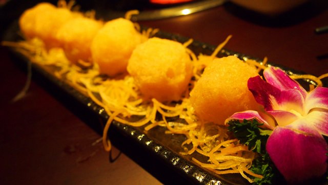 到了捞王怎可不试他家招牌的芝士虾球呢?这个虾球的做法很是新颖独特,厨师把芝士与虾球做了巧妙的结合,把芝士融入进虾球之中.在锅底中烧烫之后虾球中的芝士内芯会化开,小心地轻咬一口,芝士则会缓缓地从虾丸里流出来,样子很是诱人.而芝士的浓醇口感在嘴里会回抱住虾肉的清甜,让虾肉在口中的味道又鲜活了不少.而这整道的芝士虾球精妙创意与味道着实使人惊艳不已,也让在座的各位留下了深刻的印象.