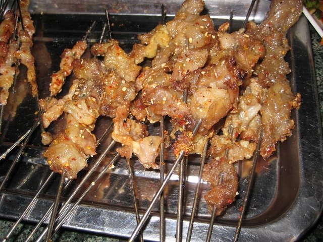 小肉串:这个还真小的呢,串着辛苦,吃着不过瘾呢,加菜啦,又点了一些。