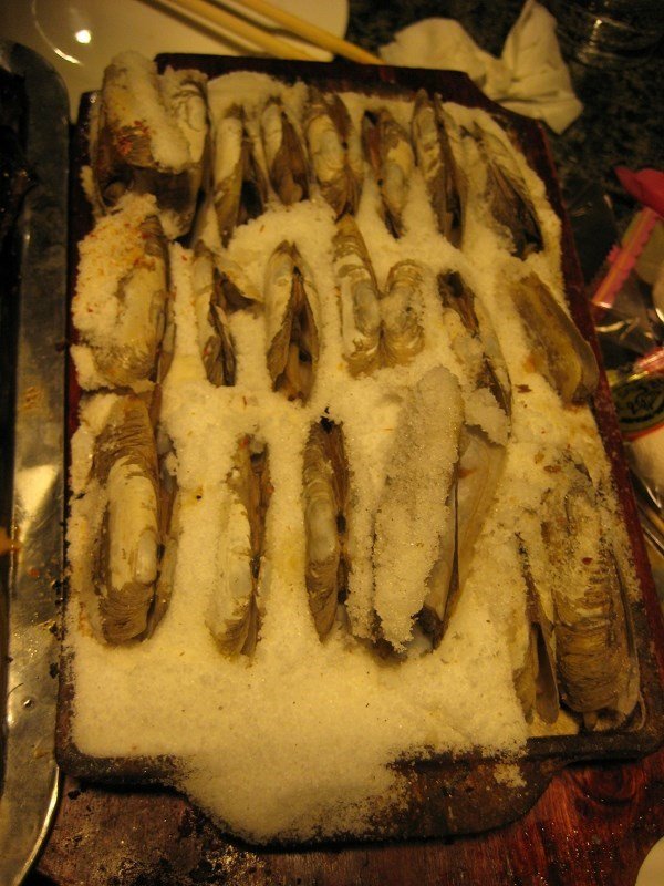 盐焗小人仙:这个也好特别啊,白白的盐上面,码着一排又一排的,好鲜灵的,平时不怎么吃海鲜的,这个让你想吃一个又一个的呢。就是弄下来有点难,后来服务员帮着弄下来的。