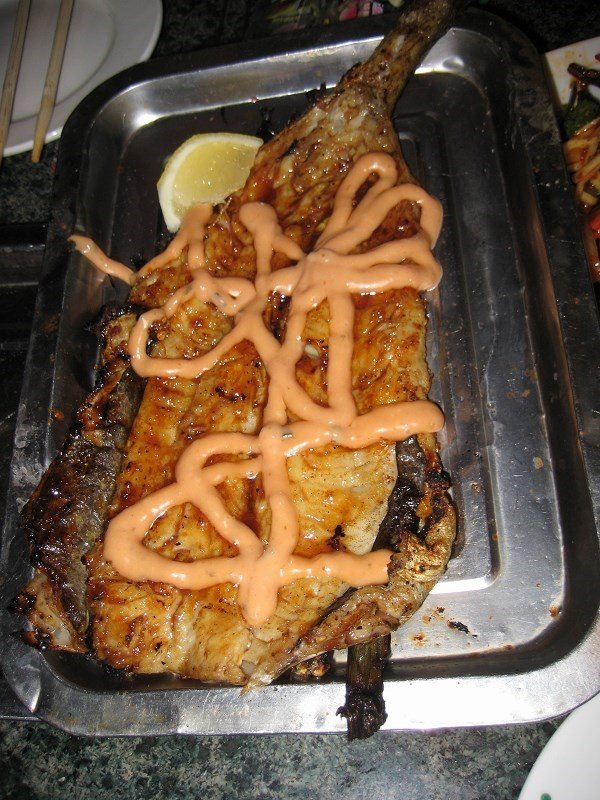 千岛酱鳕鱼:呵呵,烤鱼的,还有千岛酱呢,很特别的,很美味的。开始上的菜中,比较相中这个。