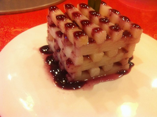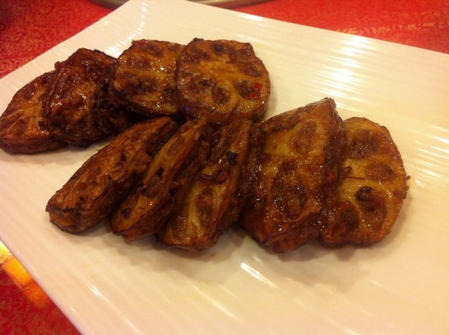 【XO酱烧藕夹】38元。菜上来傻了眼,点错了…明明想吃的是炸藕合……倒是这道酱烧的藕夹也还不错