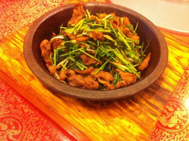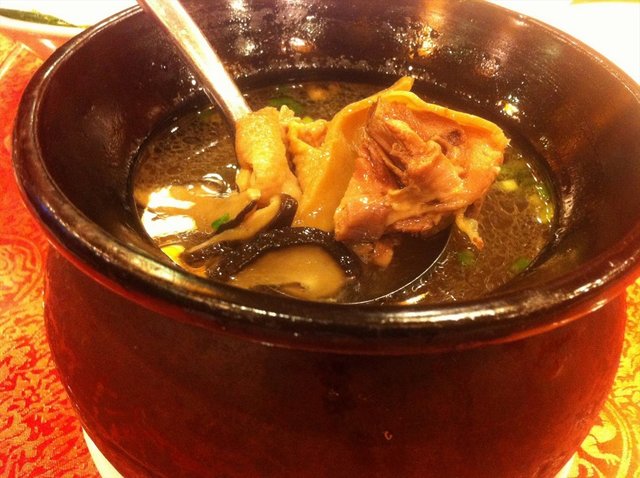 【江西烧土鸡】48元。魔王我不喜鸡肉,所以只是尝了一小口。客观的说,竟然有小小的惊喜,土鸡肉精、味儿足,且居然处理的口感很嫩。汤清甜,无负担