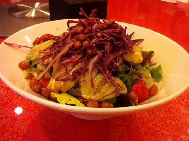 【百万大拌菜】18元。记得小时候,就烦长辈每餐必点大拌菜,毫无新意,现在我也“同流合污”了…主要是想吃口健康的、清爽的素菜。味儿够,还有菠萝