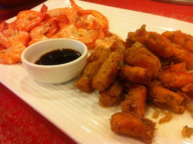 【一虾两吃】68元。头次看见虾头椒盐、虾身白灼的做法,有创意哈~