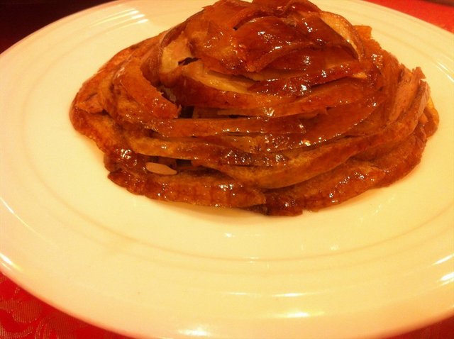 【新派烤鸭】鸭券换的也没花钱哈哈~去年还是前年,他家老有25元秒杀烤鸭的团购,那会儿真是差点儿把咱大北京的这道招牌美食给吃伤了,不过也就此奠定了金百万烤鸭在咱老百姓心目中的地位,确实是正宗、不贵。 这天的烤鸭品质依旧,鸭皮酥香流油但不腻,春饼又薄又韧,有些日子没吃这口儿了,一吃还真上瘾,连卷了两张。若要吹毛求疵,就是没有蒜泥。