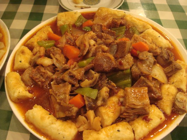 大盘鸡,明显鸡肉比土豆多阿,真是很实在啊,里面泡的拉条子特别赞,首先就是拉条子好,泡汤也不容易烂,另外就是汤好,拉条子吸收了汤汁,自身也充满了好的味道