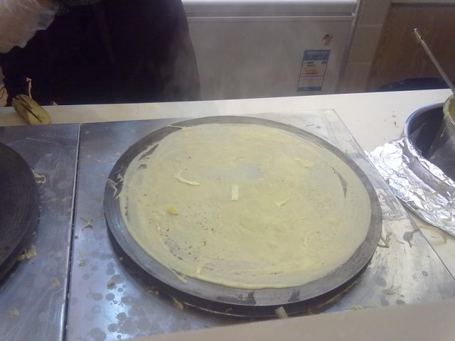 日式的法国煎饼果子 天海惠梨香等級42013-11-16 關注 可丽饼这个名字听起来挺洋气,其实就是煎饼果子嘛,哈哈,和小伙伴们围观了一下制作过程,完全就是煎饼果子的做法,店里的电视放着介绍,说是法国的,不过店长是个日本大叔哦,汉语说的相当不错,我一开始还以为是带着南方口音呢咔咔。 可丽饼种类很多,有甜有咸的,买了个巧克力香蕉的分食了,甜甜的,煎饼的饼底还是和中国的不一样,比较的细腻吧,也容易入口一些,巧克力酱很甜。 就是小妹们摊煎饼的速率还不够快,多练习啊哈哈,需要开票到收银台去交款,略费劲。以上食評乃用戶個人意見 , 並不代表OpenRice之觀點。讚好分享日式的法国煎饼果子 玛莉欧可丽饼 https://s.openrice.com/KtbT3m0kLy400檢舉 張貼 評分4味道4環境4服務4衛生4抵食