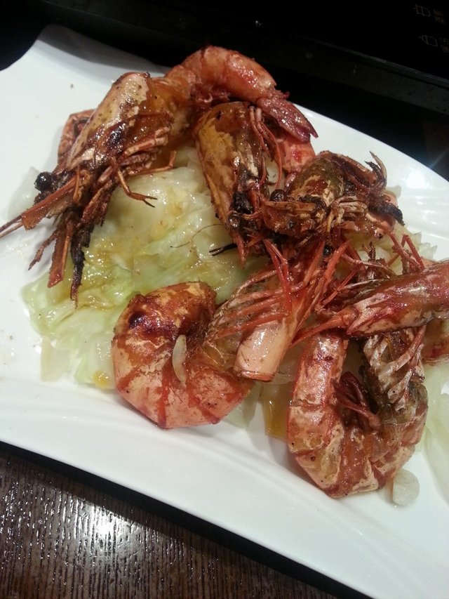 拷过的,上来的时候很浓郁的海鲜虾味,而且虾很大很大,量也挺多的,性价比较高,虾肉很嫩,考过的更香~肉质有弹性~