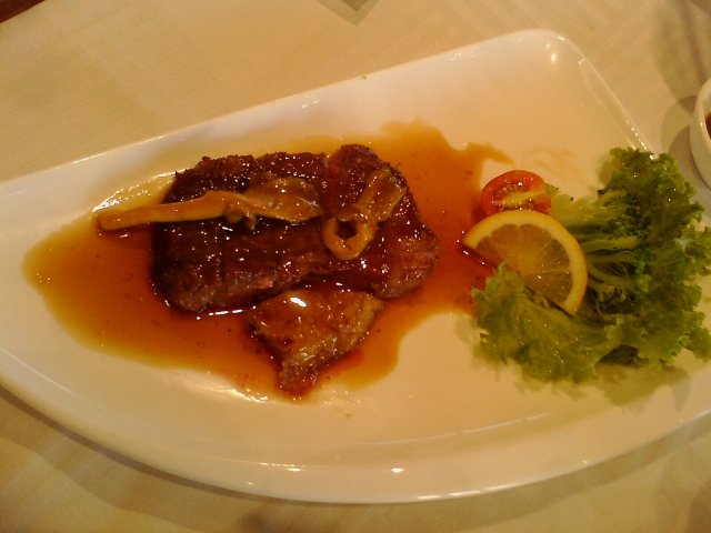 一小块牛排,量少,味道还不错,肉质很嫩,选料很不错,酱料不太和我的口味,感觉一般,不过看在牛排本身不错的份上我还是给好评的。旁边还有鹅肝,不知道我的口感还是什么,感觉有点腥味,除去这个腥味,其他还不错,很细腻,还不错。