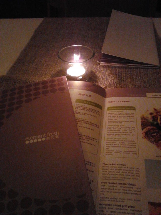 晚餐@新元素 甘之如怡等級42012-10-1211 瀏覽 關注 和朋友两个人相约去新元素,准备拍菜的照片的,木想到才拍了张桌子的照片,手机就木电了,相当悲催。 我点了一份美国西南海鲜色拉,里头有虾,仙贝,各色蔬菜,墨西哥青椒,再要了一杯覆盆子芒果果昔。海鲜色拉,端上来好大一盆,不过都是那些蔬菜叶子看着庞大啦,哈哈,虾和仙贝的味道有些淡,不过蔬菜口感很新鲜。覆盆子芒果果昔,味道很好,酸酸甜甜的,喜欢。 朋友点的是凯撒色拉加鸡胸肉,和西瓜汁。 甜点我们share了一份巧克力蛋糕,盘子里放了一个香草单球和一片巧克力蛋糕切片,蛋糕蘸着冰淇淋一起吃,超赞! 我们6点多进去吃的,谈到10点多出来,呵呵,桌上的蜡烛都点完了!以上食評乃用戶個人意見 , 並不代表OpenRice之觀點。讚好分享晚餐@新元素 新元素 https://s.openrice.com/KtbT1009b8300檢舉 張貼 評分4味道4環境4服務4衛生3抵食