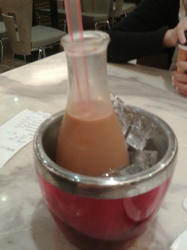 樽装原味冻奶茶,22元,一小瓶放在小冰桶里端上来,有点噱头,冰得蛮厉害的,味道蛮好,茶味蛮浓的,但不会觉得苦涩。