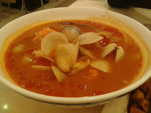 冬阴功粉丝汤,32元,里头有蛤蜊和青口,汤有点小辣,青口不太新鲜。