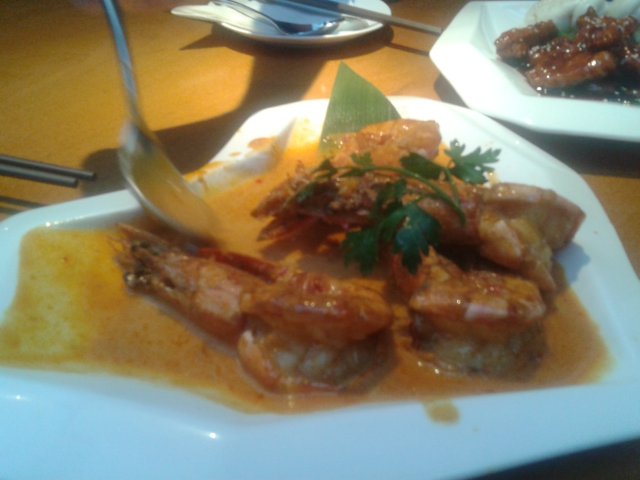咖喱虾,四个大明虾,感觉烧得不够入味,还可以吧!
