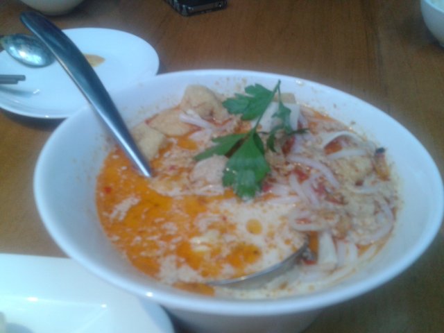 海鲜面,这个我觉得一般般啦,里头有些蛤蜊、虾什么的,汤里头也有椰汁。