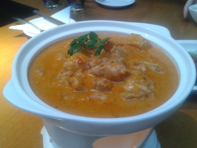 热菜点了咖喱鸡,这道菜很好吃,甜咖喱里加了椰浆,下面点着个小蜡烛,时时加热,味道是很好,不过量太少,压根没几块鸡,都是土豆块。