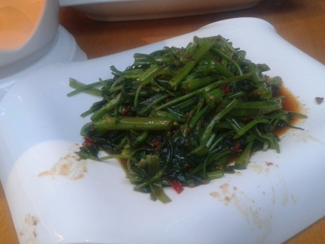 炒空心菜,这个还不错,里头有些微肉末,空心菜也挺嫩的。