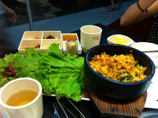 终于放假了 趁着外地的同学还没回家一行4个人来个小聚餐 因为刚在楼上看完电影所以很是饿啊 它们家很好没有那些个爆红菜馆下午有翻台散客打扫的规矩所以找了很安静的位置坐下了 送的南瓜粥不喜欢好粘稠 点了很多烧烤的菜式(因为好友中有食肉达人无肉不欢的)像宫廷牛肉 秘制猪里脊 鸡腿肉(这个我超爱超爱的 好嫩好多汁!爱)培根腌制的太咸了烤完加酱加蔬菜还是咸的咽不下 另外鱿鱼也超推荐 赞~ 主食最后大家都点了份石锅拌饭 个人也最爱牛肉石锅 它家的拌饭酱很特别 好吃 总的说来很是满意 大满足了 回家准备戒肉两天