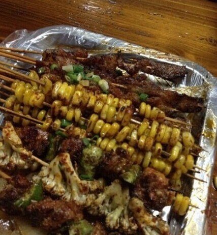 现在曾哥烧烤的名气越来越大了,简直就是在抢~我觉得味道真心一般,越来越不行了。不过还是很爱五花肉和玉米粒,玉米是一颗一颗串好的,吃起来很过瘾,也很入味。的确是很用心。这次去吃了大家都在推荐腰片,有点惊艳,确实很嫩很嫩。烤茄子火候控制得刚刚好,不过有点偏淡,最后还是用醋沾着吃,没想到还不错。