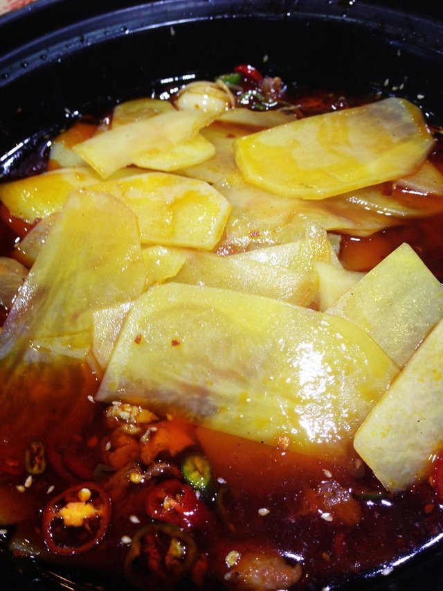 素菜:土豆、藕片、豆皮、海带、金针菇、苕粉等等