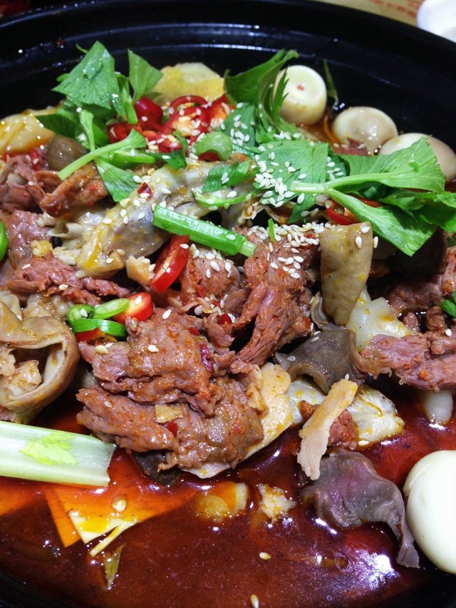 最后把脑花倒进全家福,吃个大杂烩,唉