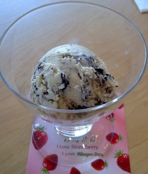@ 曲奇香奶,一个球28块,本来在想要不要加配料的,服务员跟我们说加了配料会把冰淇淋原来的味道盖了,所以听了她的劝告我们就没点那个一心一意(就是单球+两种配料),曲奇香奶的味道还是不错的,很浓郁,再加上曲奇脆脆的,让我想到了DQ的奥利奥。。。当然啦,DQ要便宜很多了。。。