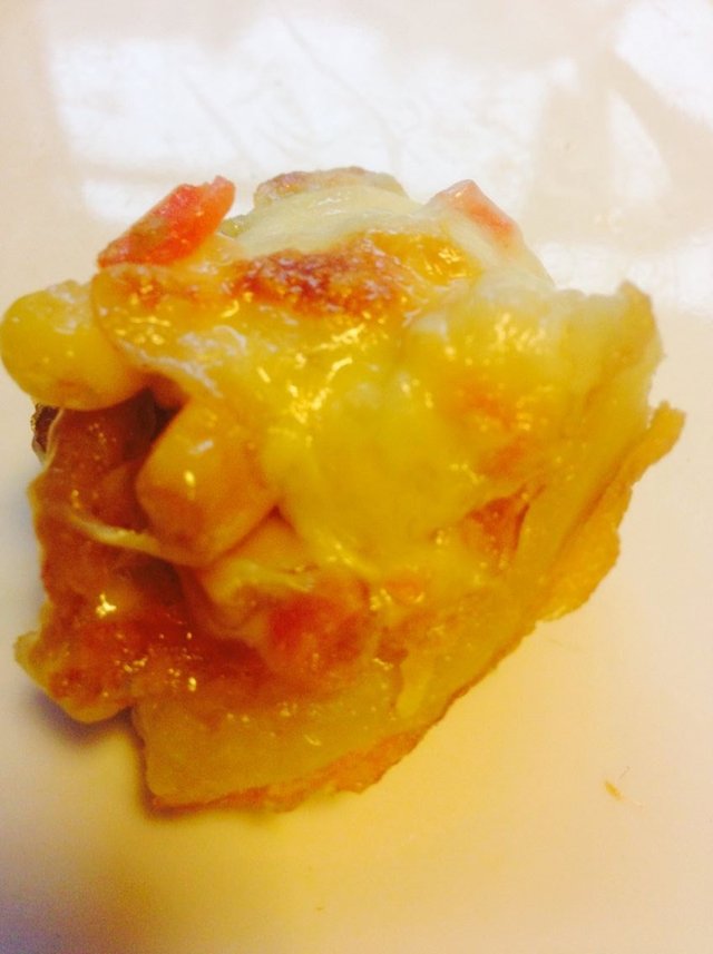 感觉像是做披萨那样焗出来的,有玉米,吃着有股奶香味,我觉得很好吃,但是朋友觉得有点腻,喜欢吃焗饭的人应该会喜欢这个小吃。