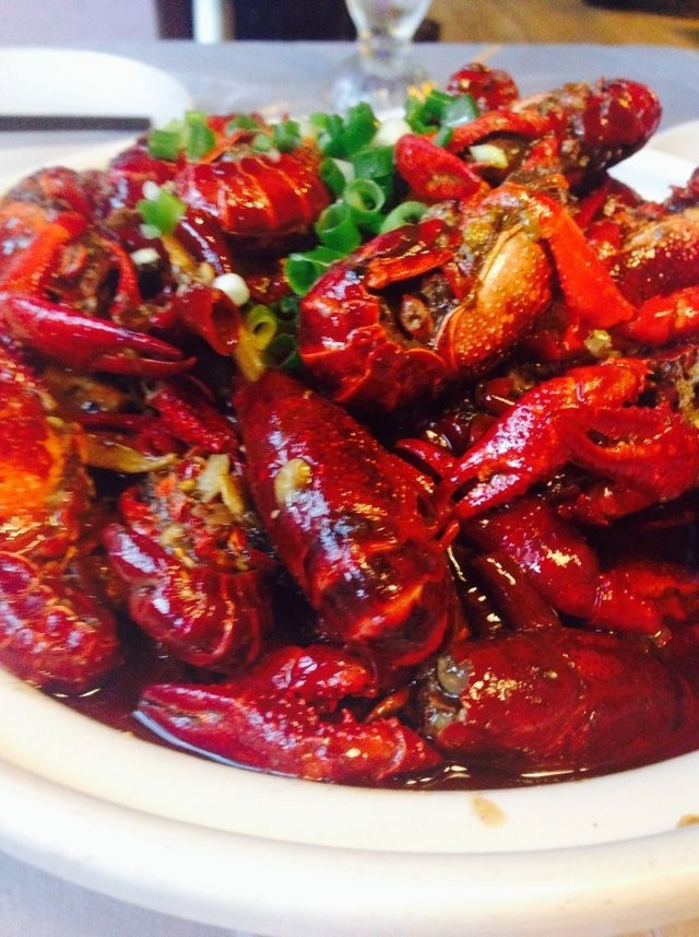 满满的一盆啊,虾的个头很大,因为是去头,开背了,所有相当入味儿~而且下面的更入味,剥完壳都想把手一起啃了~下面垫底的有土豆片,超入味。虾肉很饱满,端上来大家一哄抢,就没了,赶紧又点了一份,朋友也很喜欢这种火爆的油焖大虾。就是土豆片太少了,我们后来吃完龙虾又加了些素菜进去。