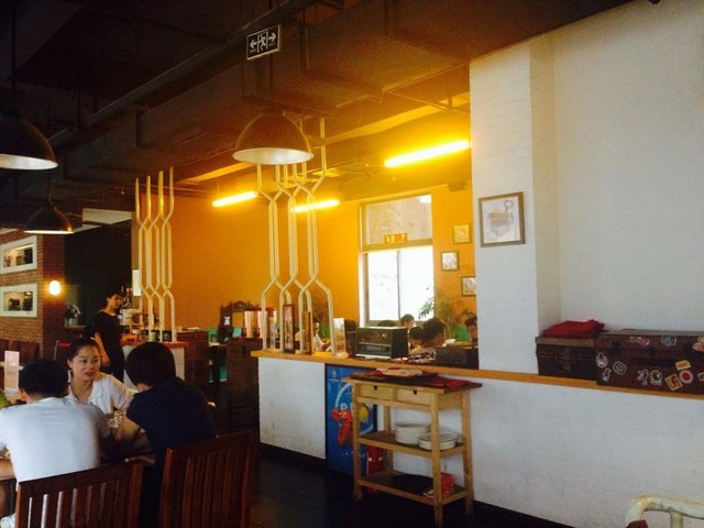 整体环境很好,装修简洁大方,干净整洁,有点小文艺,地面不是油叽叽的,这点很好。到的比较早,还很安静。