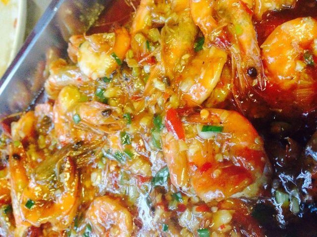 不知道是不是这个名字了,反正是鱼香味的基围虾。第一次尝试鱼香味的基围虾,真的太好吃了!!虾开背,去线,留头,鱼香作料很多,相当浓郁的鱼香味,而且开背处理后,免去了我这个懒人还要剥虾的痛苦,吃了好多啊,真的推荐这个!