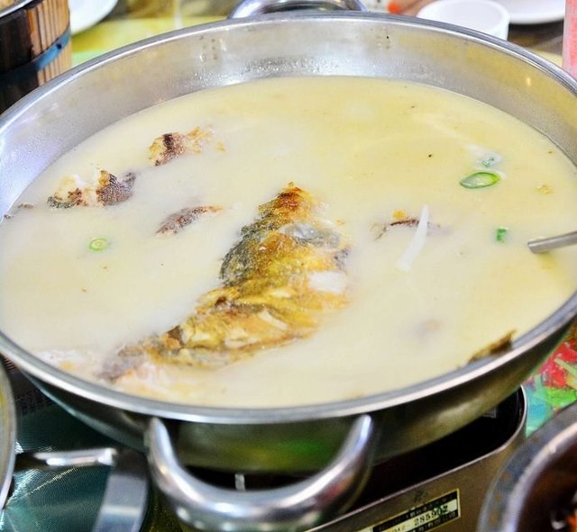 【水煮大湖雄鱼】48元,据说这是野生的雄鱼,不知道是不是真的,反正先尝尝鲜在说。看这鱼汤那么的白,肉也比较细嫩,一口汤喝下去,非常的鲜美。