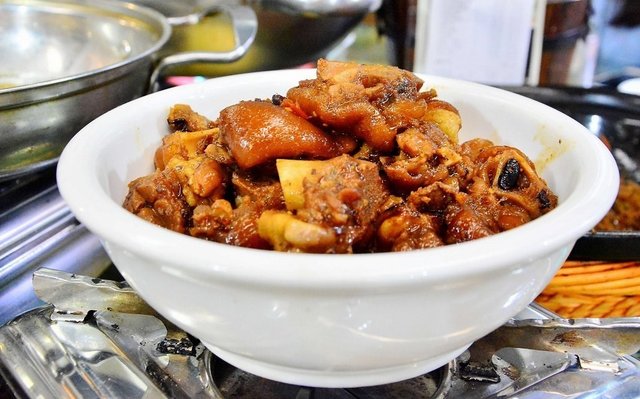 【口味猪脚】 这道菜是店家用他们秘制酱料与猪蹄细火炖制而成的。看到这,我不禁的口水直流啊,看起来那么有弹性的猪皮,里肉紧致。一口咬下去,细细腻腻、爽滑入口