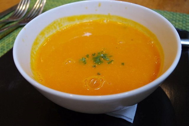【烤南瓜茸汤佐脆葱丝】看着光鲜亮丽,味道也是十分赞