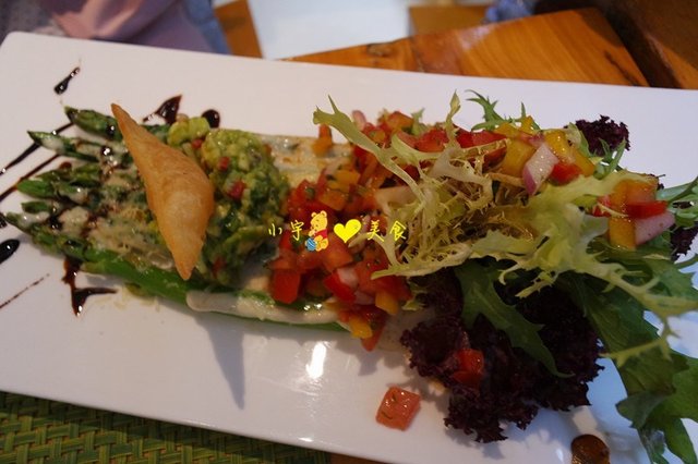 【芦笋佐凯撒汁】芦笋很老,加上汁也不好吃,我们整个就是剩下一大盘