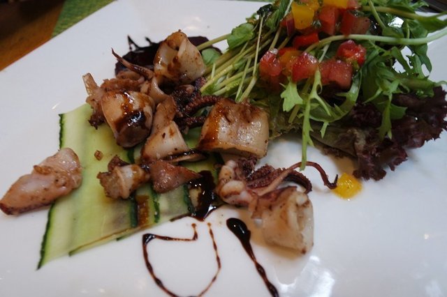 【煎炒小鱿鱼配黄瓜刮片】为什么还打了好吃的分数,是实在感觉它家这前菜没有一道好吃的啊,鱿鱼怎么能做的这么难吃啊!幸好旁边有黄瓜片,可以解腻
