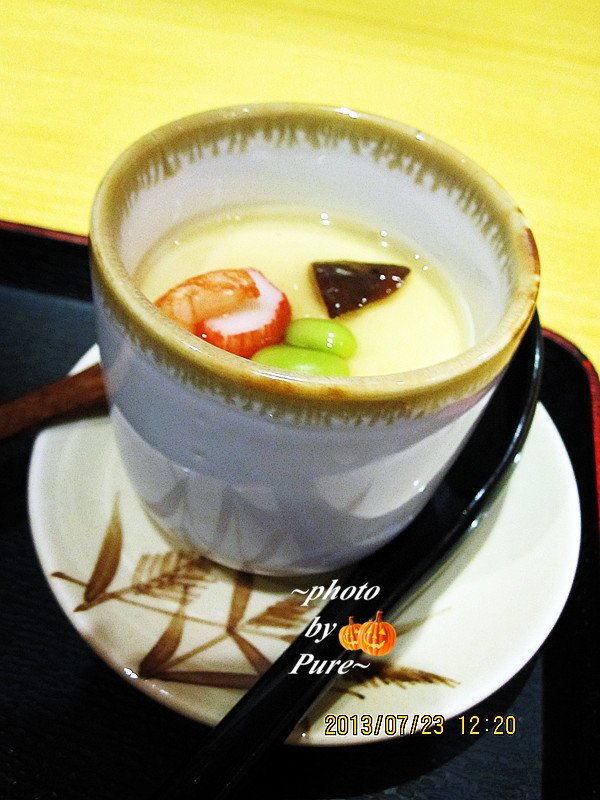 【炖蛋】配有的炖蛋味道偏甜。也很独特。上面还有毛豆。小小的一盅,挺可爱的。