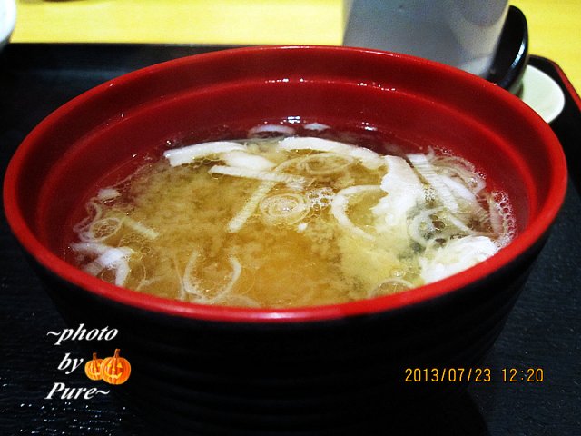我的寿司饭套餐里面还有海鲜汤。里面有熟的三文鱼边角料的。和外面普通的味增汤不同。