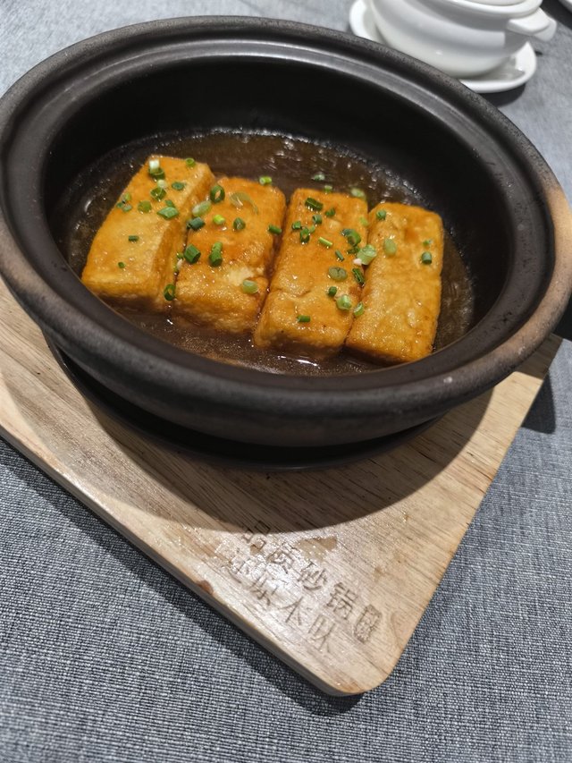 鮑汁自制黃豆豆腐~豆腐外皮炸得脆脆,內裡滑溜溜的豆腐,明乎其實的外脆內軟.