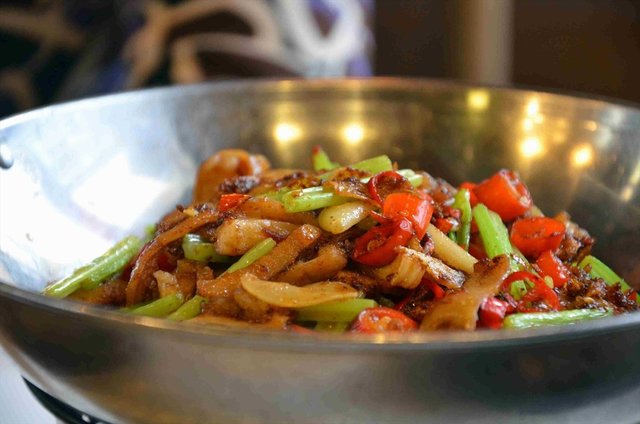 最后一道,干锅肥肠,58?这是我最期待的,但结果好桑心,肥肠都切成丝了,一点嚼劲都木有了,不过处理的到还算干净