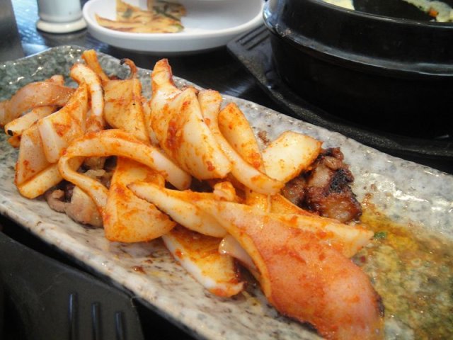 这是烤好的鱿鱼,非常嫩,很好吃。不得不赞一下,这里的服务员烤的都很好,对于烤肉的火候掌握的很不错
