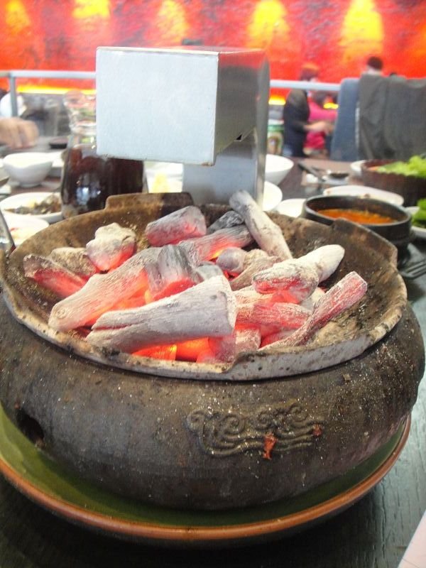 这是我们的烤肉炉,炭火已经烧的旺旺的,就等着肉肉啦