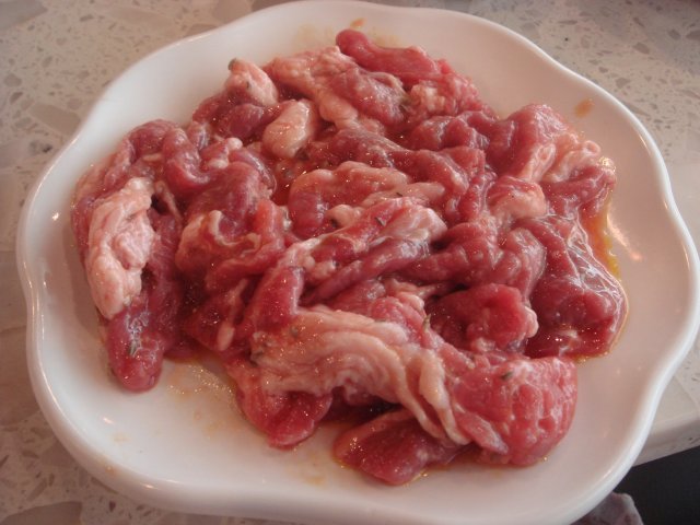 牛肉也是必不可少的,牛肉切得很薄,相当的好烤,而且都是瘦肉,吃起来口感较好。