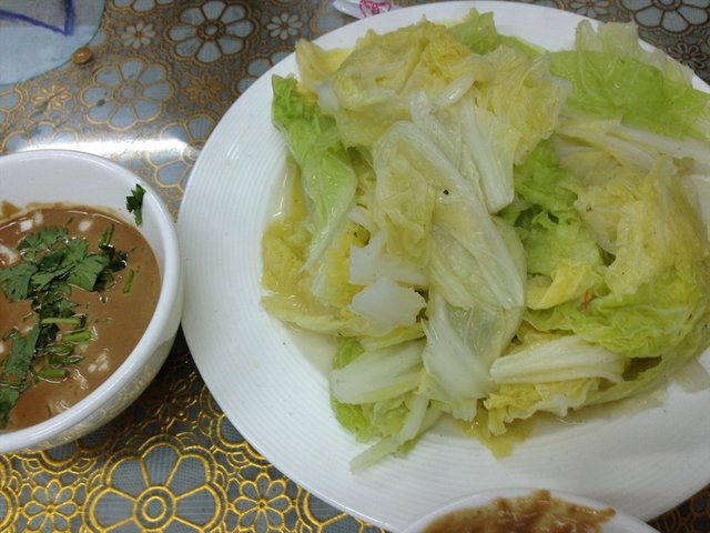 【爆白菜】12元。别说是吃了,真是头回听说!名字邪乎,不过上了桌看了样子一下子便豁然开朗了,就是涮羊肉里 的大白菜哈哈 不过还真别说,就好这口儿,没了筋骨的白菜裹上香浓的麻酱小料,嘿!小时候的感觉一下儿就找着了!