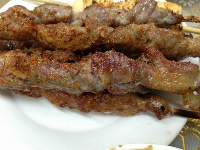 但具体差在哪儿我也形容不上来,以至于整体的出品着实惊艳!这里的肉串、肉筋区别不大,瘦肉、肥肉、筋膜绝非各行其道而是浑然一体,调配的味道丝丝入扣,即使贴签肉的部分也绝对够味儿,羊肉紧紧的抱着竹签,费点儿劲,撸下一口,嘴里猛嚼,特别特的爽!