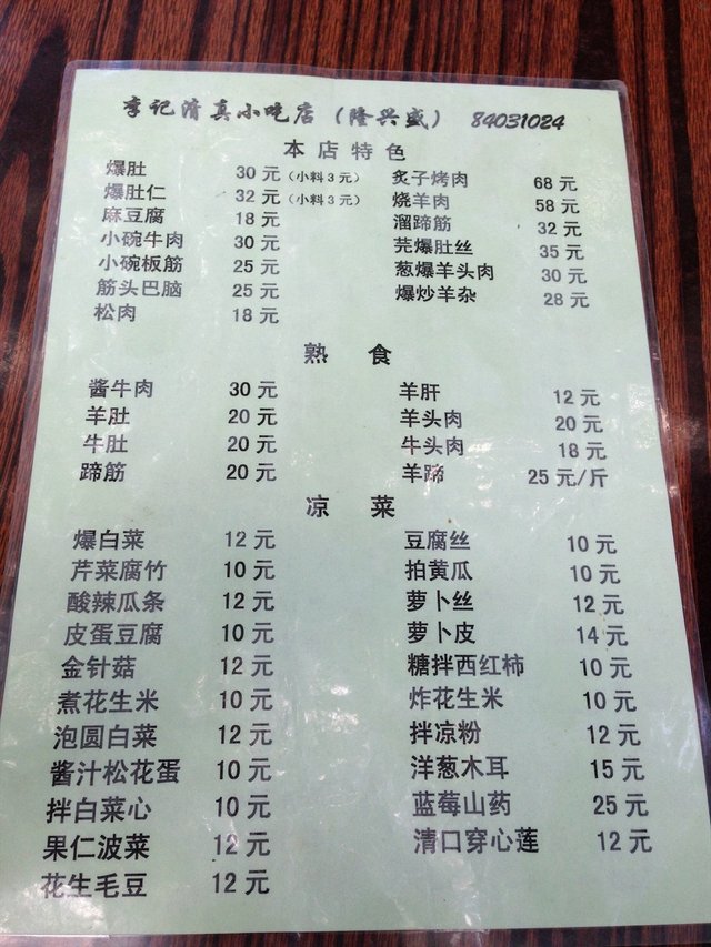 正因如此,再加上咱打小儿这片子长大,所以不论李记怎么被宣传、真的假的,都有点儿不屑去探的意思。不过二环外长大的那位老帽子可不这样儿,嚷嚷着好几次还是应该来尝尝,两周前,恰逢我独自活动,人家终于逮着机会,拽上俩人,据说是吃得倍儿美,回家又是喋喋不休又是给我看照片,给我的感觉就是,便宜的邪乎,好吃的邪乎
