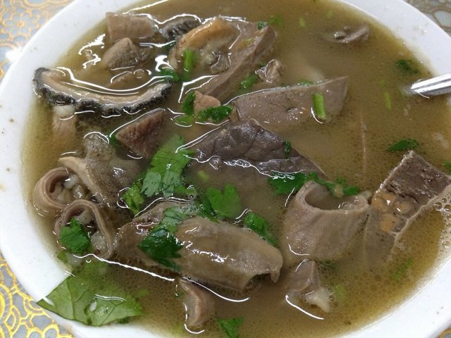 【羊杂汤】8元。果然如碎碎念的霍先生形容的一样邪乎!料超足,而且只有8块钱!关键是羊肠嫩、羊肝不腥、羊肺嫩滑……所有原料都无懈可击!难怪不少桌的客人,就光来碗羊杂汤、要俩烧饼夹肉、吃得不亦乐乎,的确好吃又实惠