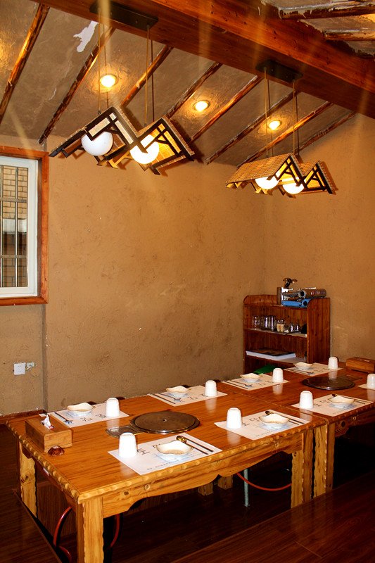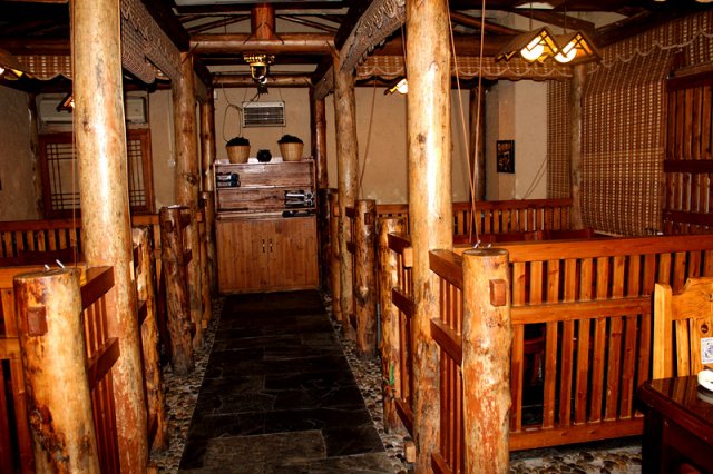 店里的风格很特别 全木质 古朴粗犷 很有新意 很像是韩剧里面的古装场景