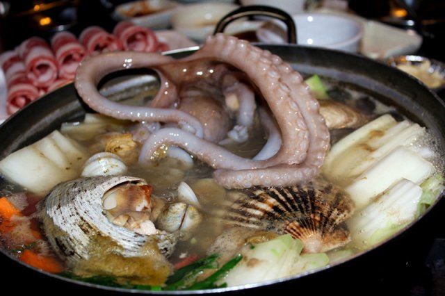 活章鱼火锅看得到的好料哦 海鲜多多