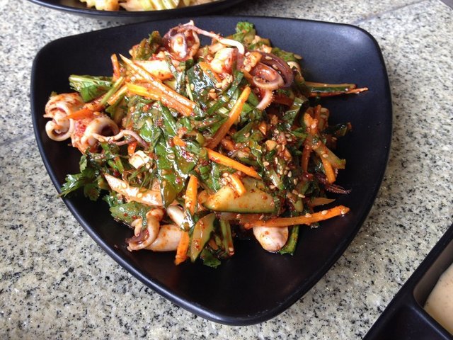 话说这个泰式貌似没有韩式的爽口,这个相比来说要逊色一点,或者说,在这样的韩餐馆走泰式范,不太适合,我更喜欢酸甜爽口或者直接泡椒口味